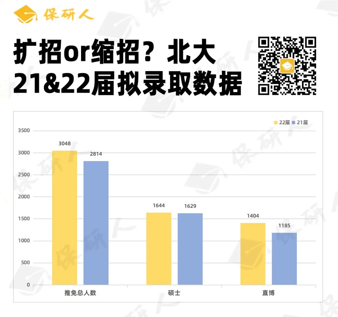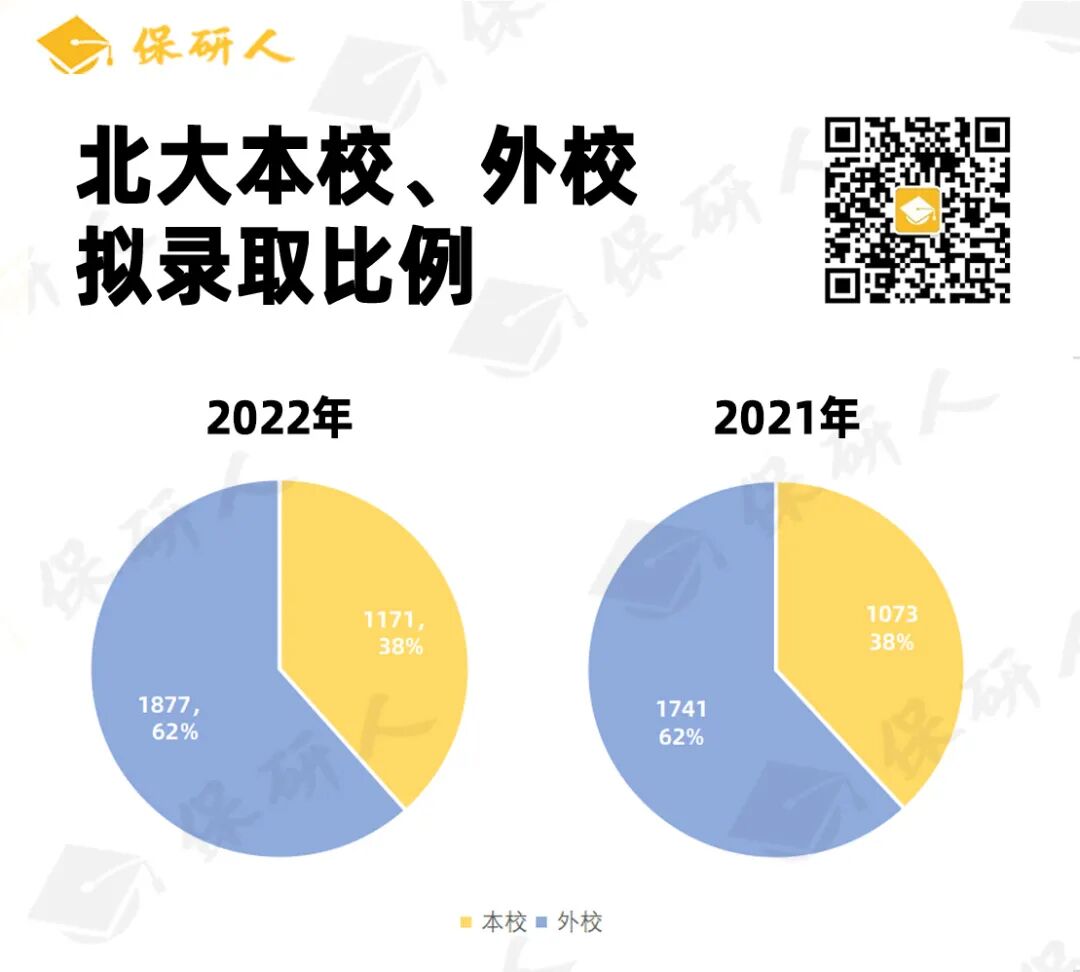 每个学校都会更偏向接收自己本校的学生,去年北大本校推免人数为1073人,2022届增长到1171人,增长9.1%。但在推免生扩招的大环境中,本校推免人数占总保研比例没有较大变化,近两年外校推免生的比例均在62%左右,所以广大保研er们还是有很多的机会!
