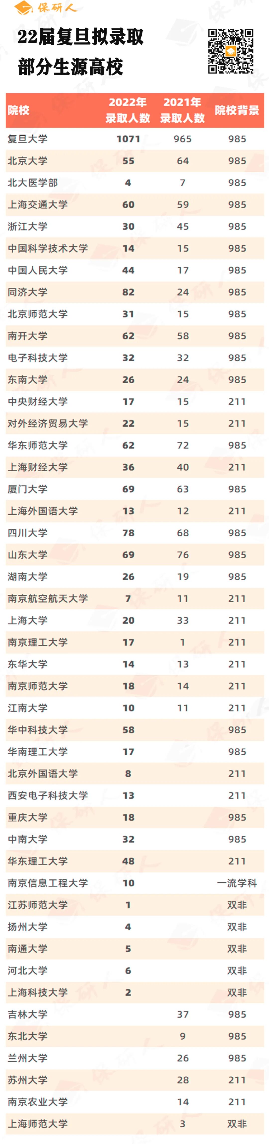 由数据可以直观地看到,与2021年相比,2022年复旦对同济大学的推免生有了大幅度的扩招,增收多达58人,表明今年复旦对同济的推免生格外喜爱。