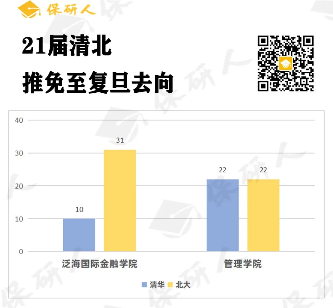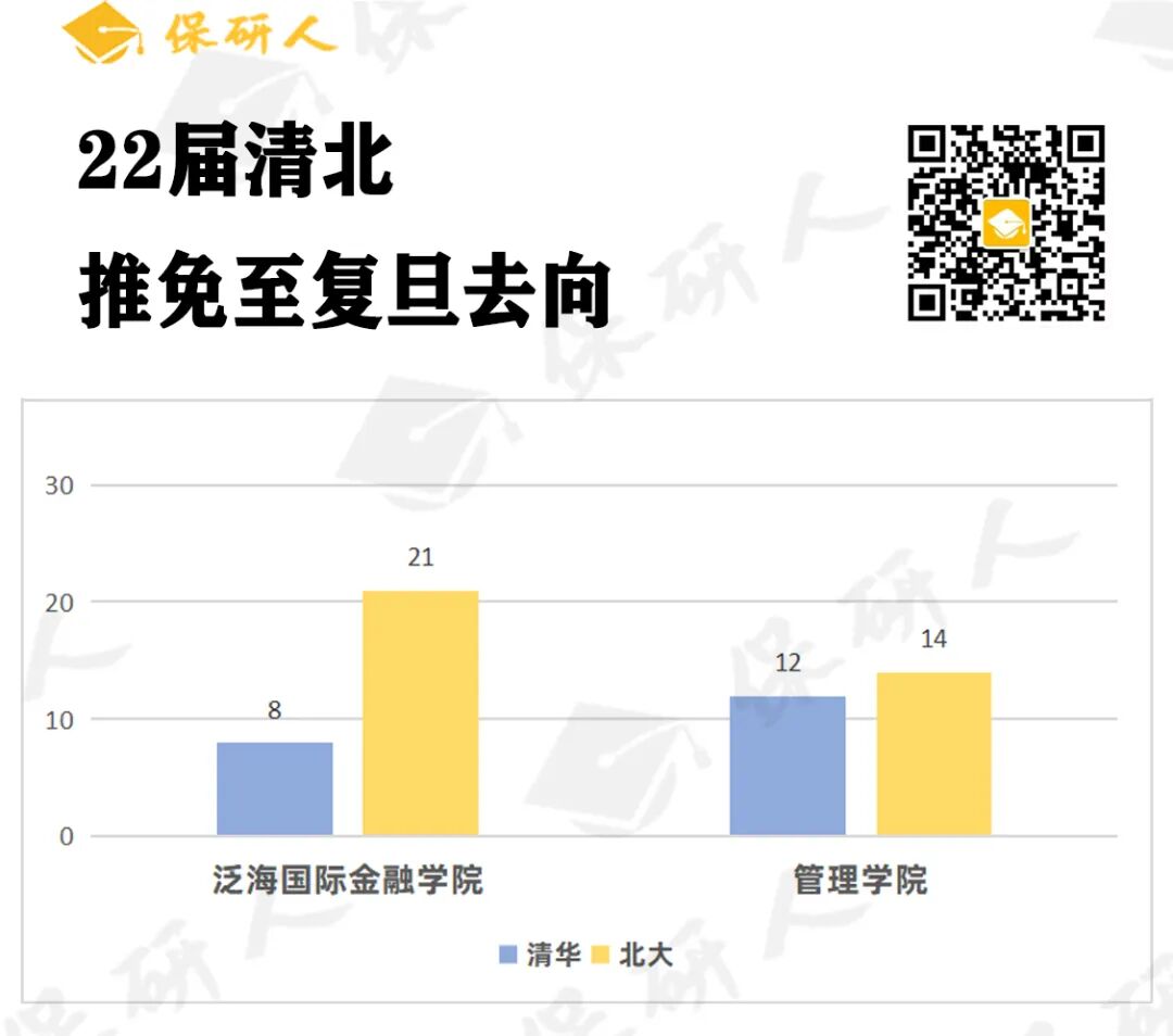 单独看来自清北的推免生源,清华大学推免到复旦大学的学生并不多,2022年有8名去了泛海国际金融学院(2021年有10名),12名去了管理学院(2021年有22名);