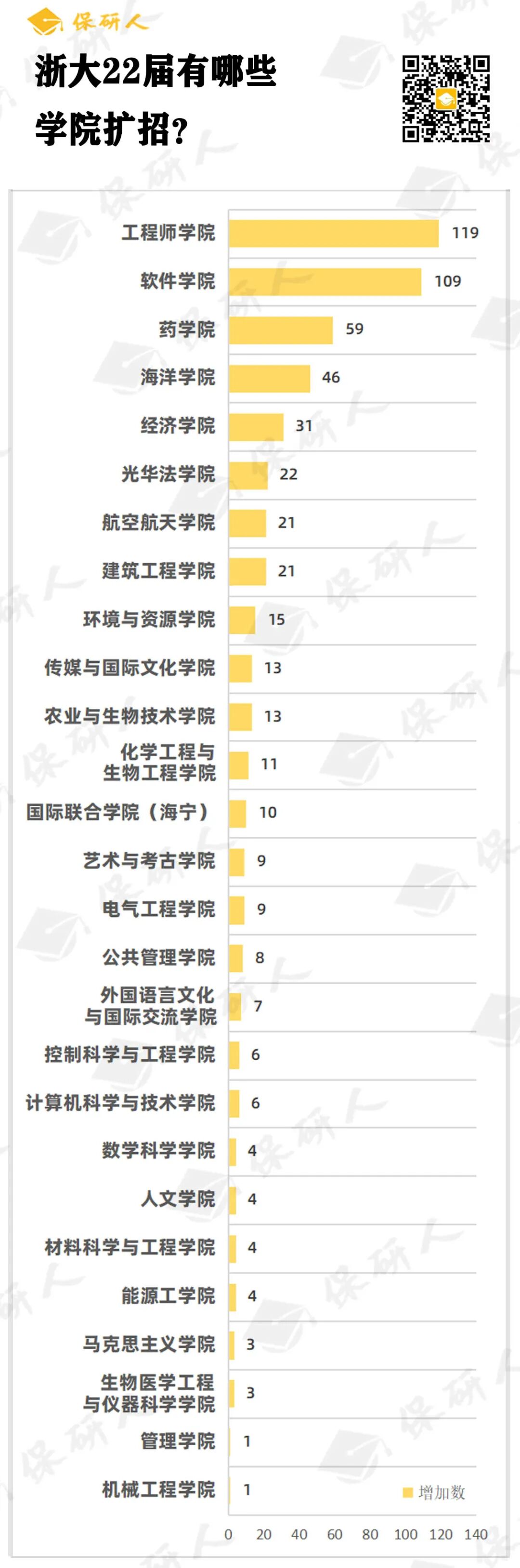 而数学科学学院等6所学院的招生规模则较小,都在50人以下,即这些人文社科以及部分理科学院对于浙大来说并不是招生的重点,如果有相关专业的同学想进入浙大的话需要注意。
