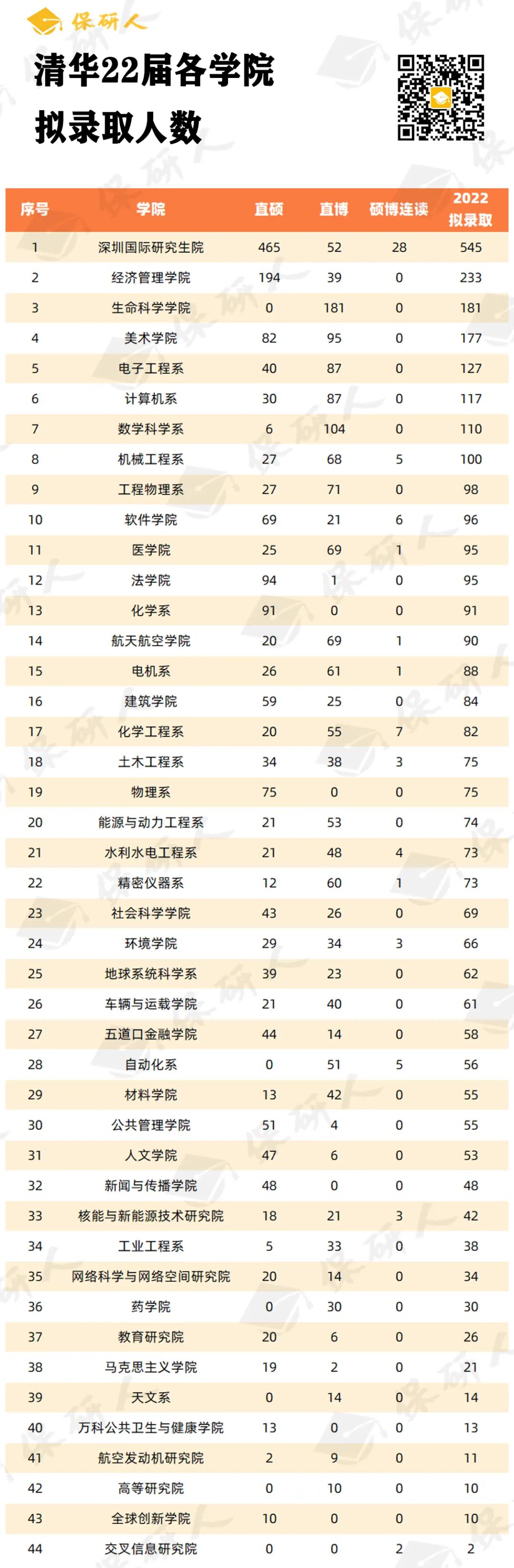▲清华22届各学院拟录取人数