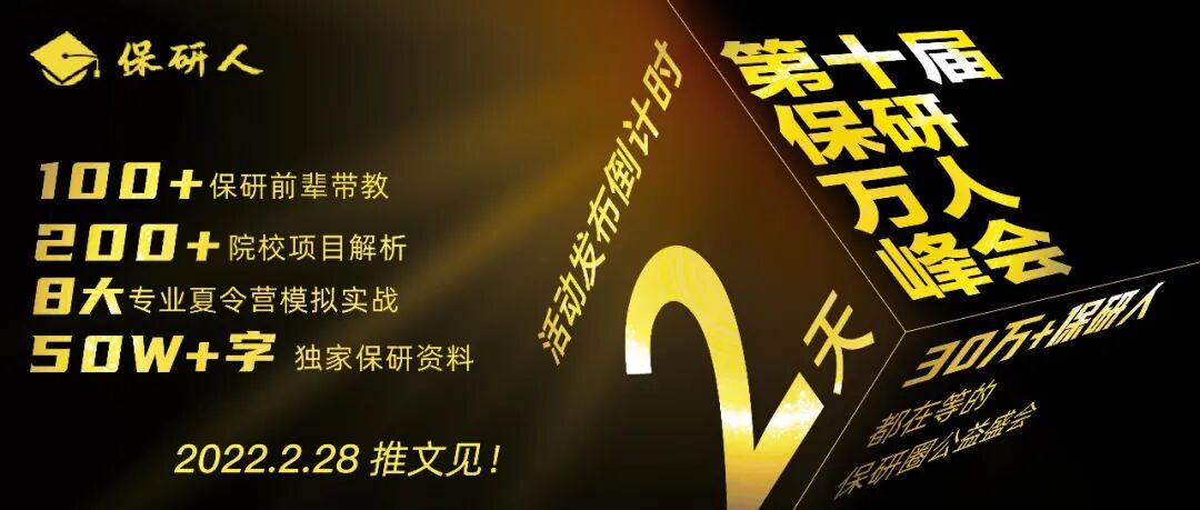 而除了以上分享,KK学姐还将在2月28日开启的保研人-第十届保研万人峰会上分享更多的保研经验,全方位讲解如何通过合理规划提高综合竞争力,在夏令营精彩突围,敬请关注!