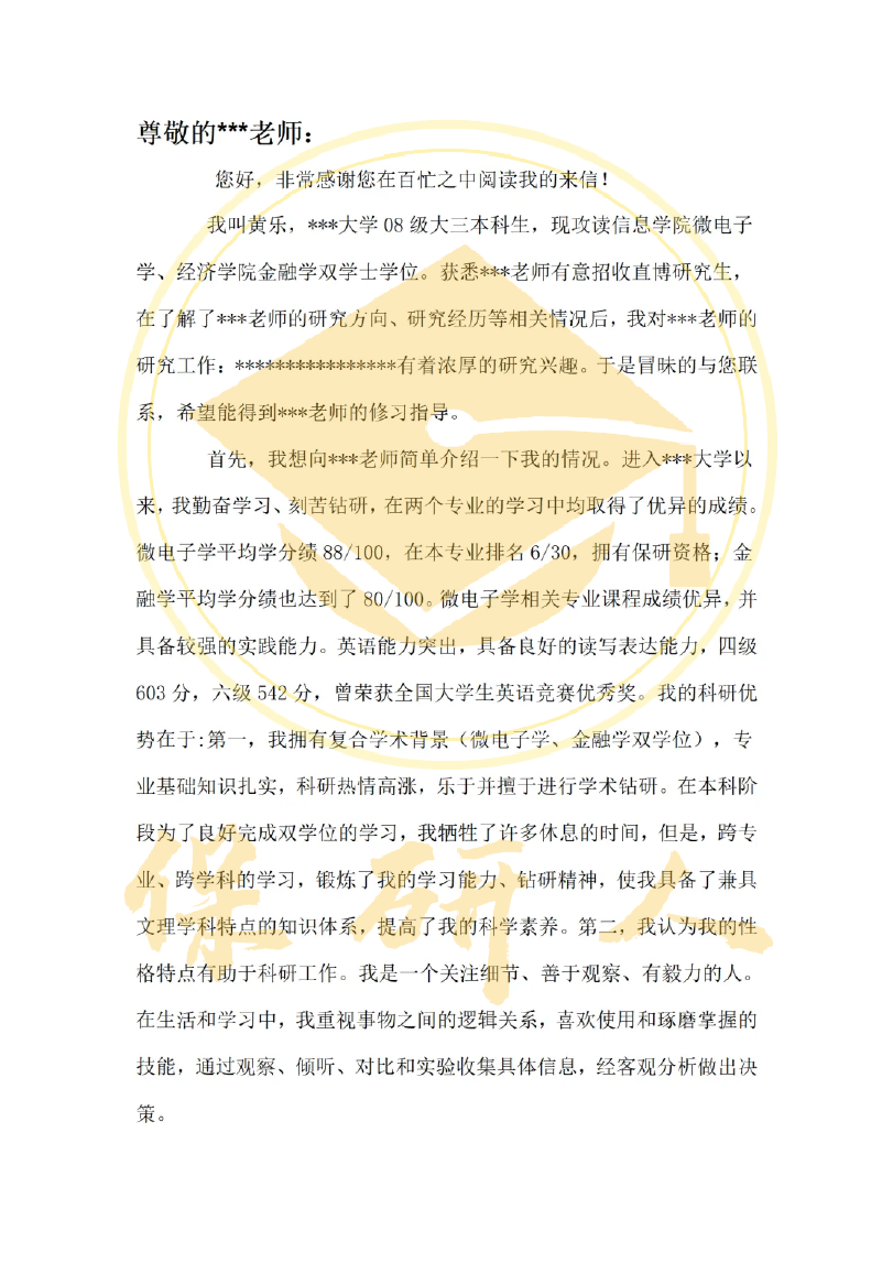自荐信需要我们运用精炼的语言概括自己的本科经历,尤其是出彩的经历,加之审核老师速度飞快,因此需要突出重点、亮点。据此,我很建议学弟妹将全篇分为学习情况(包括绩点、排名、所获荣誉)、科研竞赛、实习经历以及学生工作几部分,以便做到条理清晰。在每一部分的开头,请务必先叙述自己在该部分最为突出的成就。如果在某一部分存在短板,则可以缩短该部分的篇幅,或与其他部分灵活合并,并突出在其他方面的优势与所获得的成果。概言之,自荐信请务必做到详略得当、重点突出!