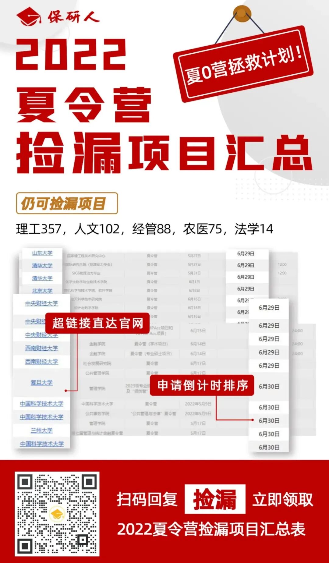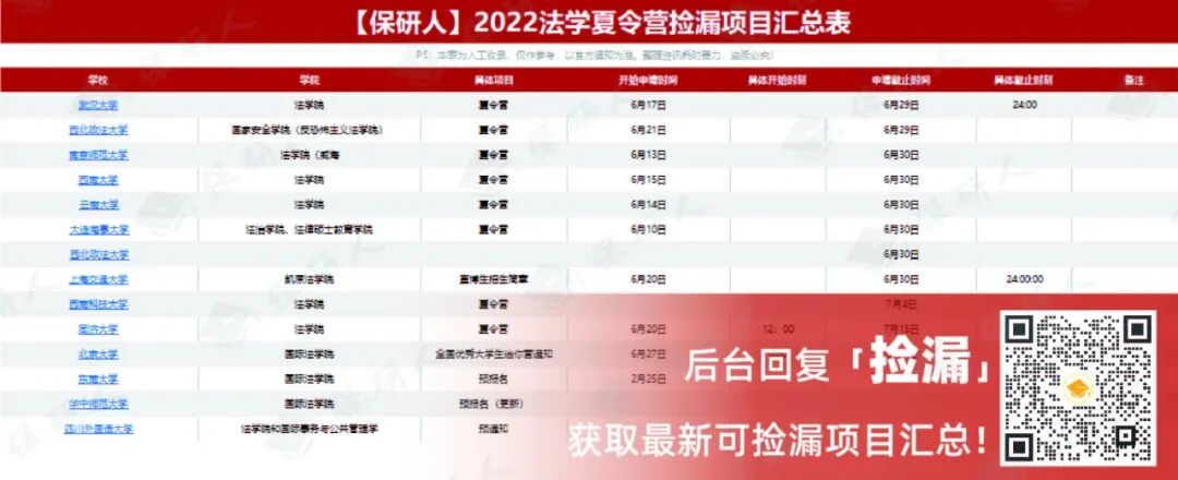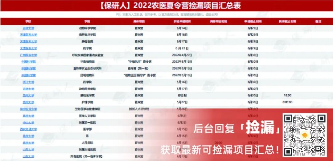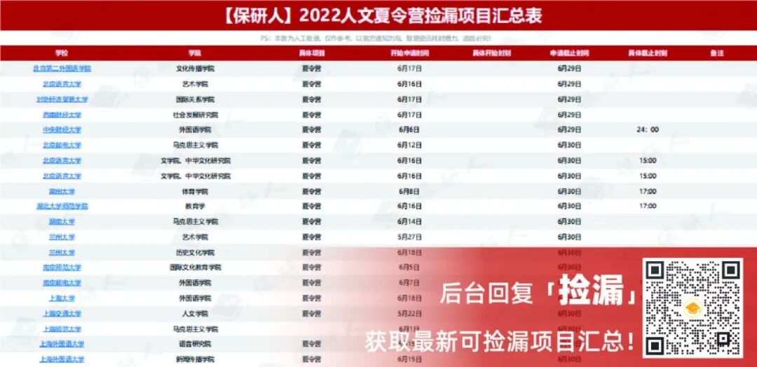 在争分夺秒的保研季,现在大海捞针般地搜寻院校项目显然略显奢侈,因此,这个大工程保研人替大家做了!(后台回复【捡漏】立即领取《2022夏令营捡漏项目汇总表》)