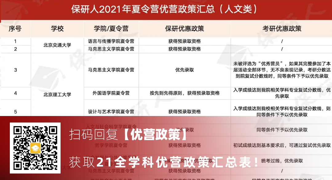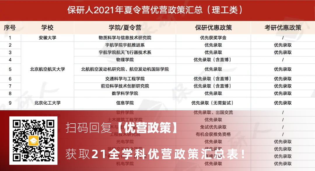 为了帮助保研er们了解各院校优营政策,早日拿到理想的offer,保研人特为大家整理了——
