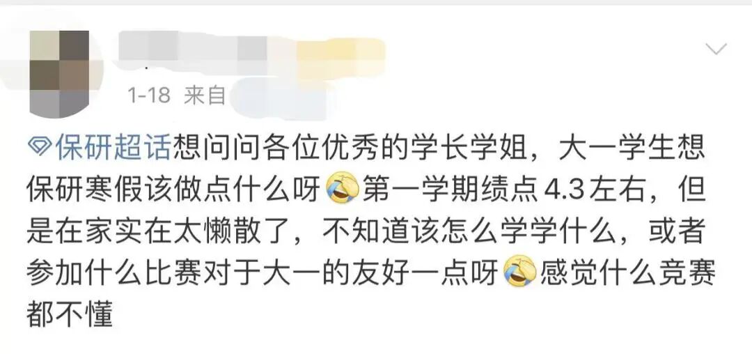 众所周知,保研这座独木桥上向来内卷严重。随着近几年疫情的爆发,保研竞争形势变得越发严峻,许多大一大二的同学居然也逐渐加入了卷王争霸赛,还有保研er直呼从前没努力,现在十分后悔——