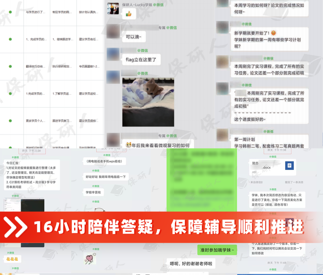 保研人全职教务老师与专属辅导咨询师16小时在线,提供不限课时的全程陪伴督学,密切关注学员的学习与心理状况。