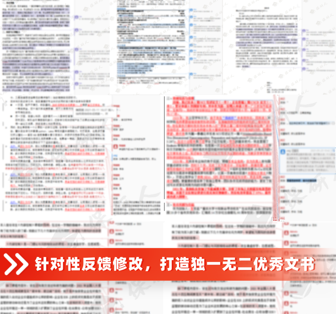 ● 专业导师:全职文书老师会仔细校订文书材料格式,结合各学科侧重点和不同项目特点,对文书材料提出针对性修改意见,同时和学员沟通进行反馈;