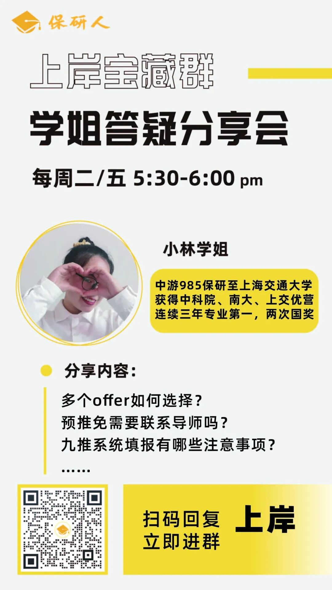 每周二/五 5:30-6:00 | 学姐答疑分享会