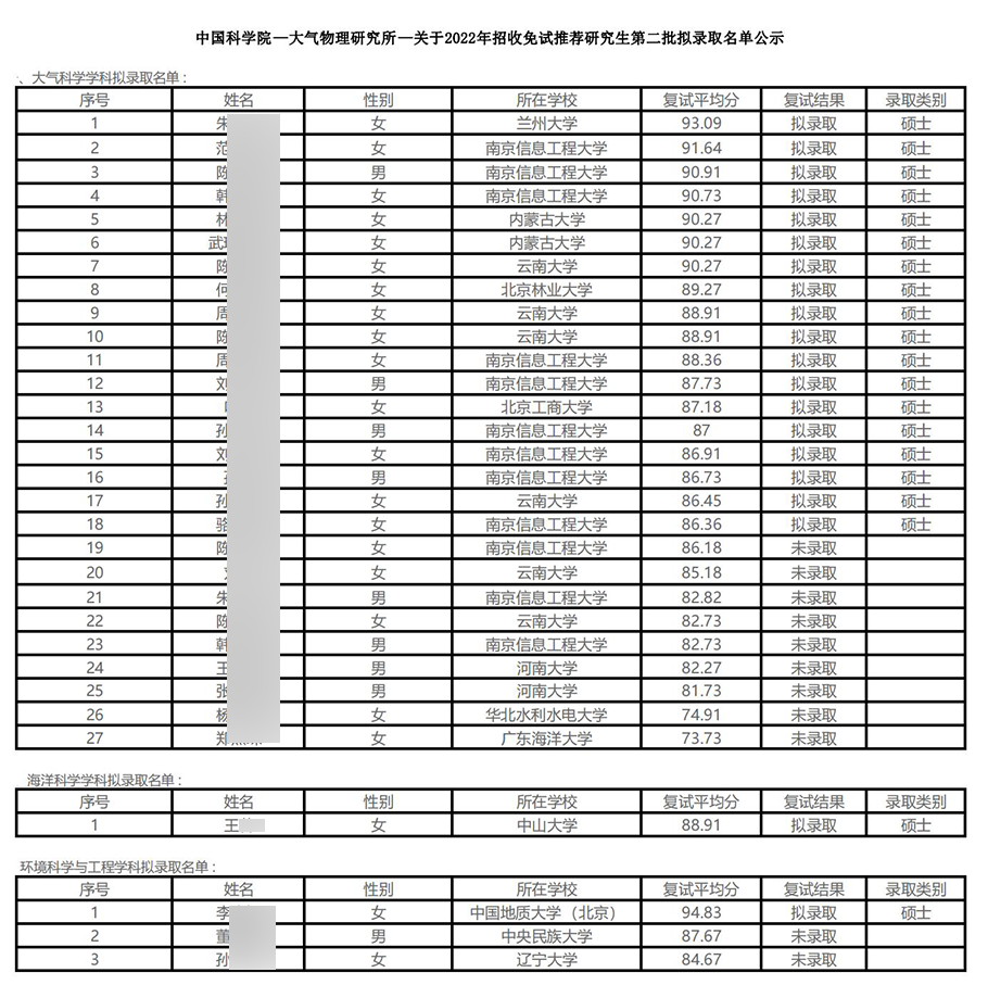 此外,2021年中国科学院大气物理研究所推免拟录取名单(第二批),其中近半数的同学都来自于双非院校。
