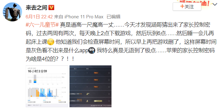 甚至不能说这是个特例,即使是资深移动互联网的从业者,也可能在手机知识上被孩子击败。昨天是儿童节,新浪微博的CEO发了一条微博,抱怨他的孩子猜出了iOS的家长控制密码,还知道把游戏卸载来规避系统的屏幕使用时间统计。