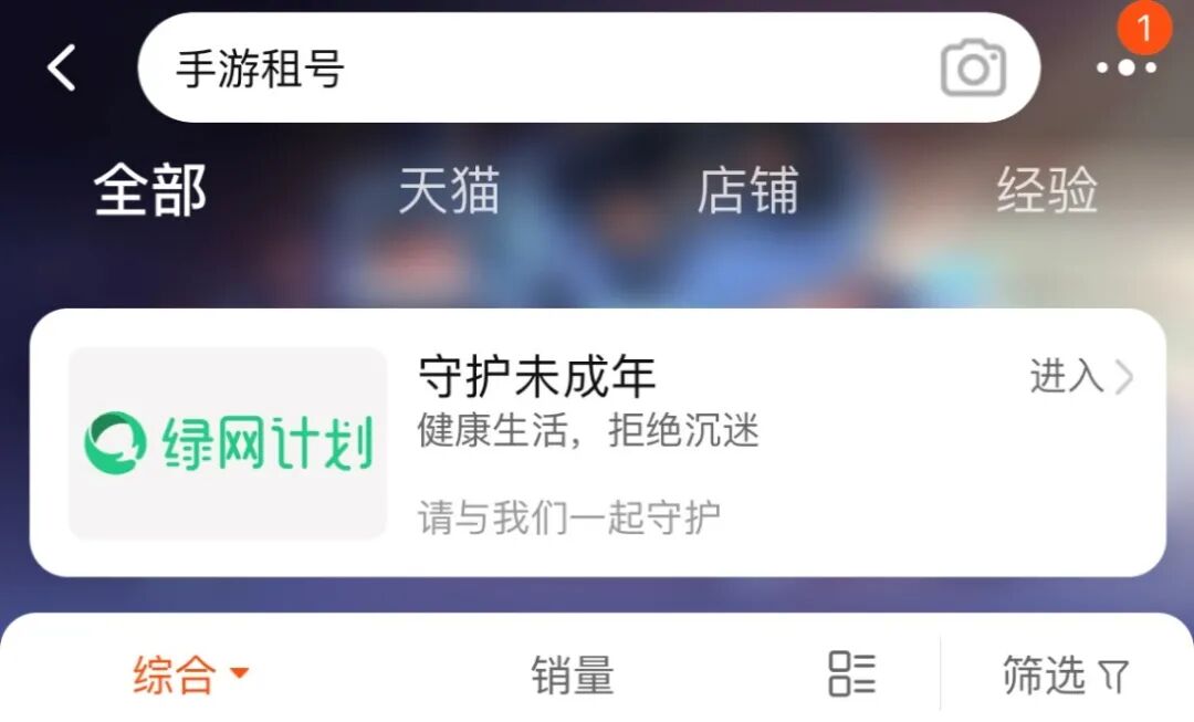 在淘宝搜索“手游租号”会弹出这个提示
