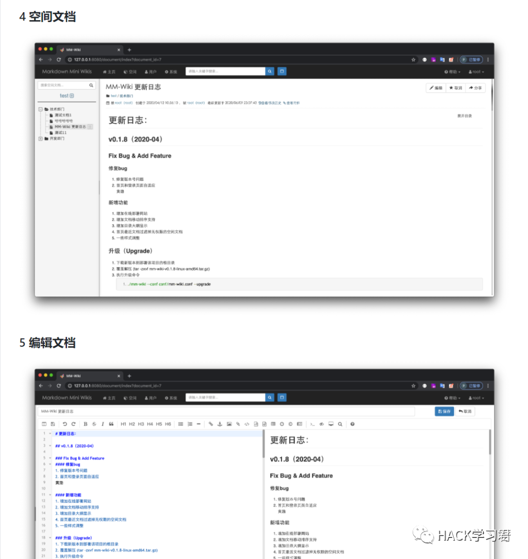 感兴趣的小伙伴可以用来部署团队和安全知识分享的wiki平台,也可以进行二次开发,作为团队内部Wiki资源共享平台