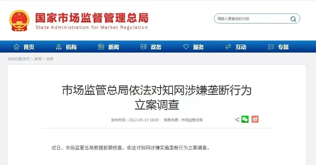 在“年年涨价”的订购协议之下,“学术界苦知网久矣”的不满日渐堆积。甚至有了“知网一鲸落,学术万物生”的戏谑说法。随着质疑声浪的不断扩大,今年5月13日,国家市场监督管理总局表示,近日该局根据前期核查, 依法对知网涉嫌垄断行为立案调查。