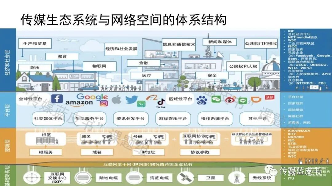 6、传媒生态系统与网络空间体系结构密切关联,互联网已经成为全球性社会基础设施。