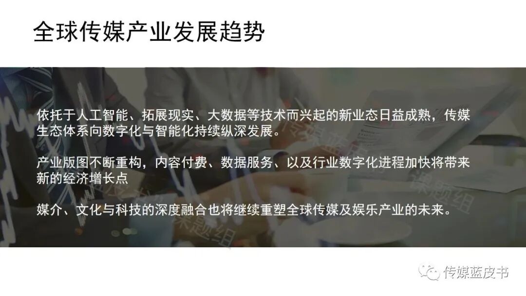 4、5G、大数据、人工智能、区块链等科技创新是目前传媒生态变化的重要推动力;