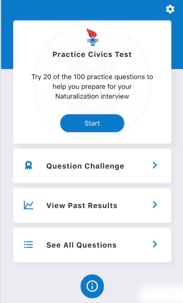 为帮助民众获得正确的入籍考试资讯,美国移民局(USCIS)在官网上推出“在线模拟考”形式的学习工具后,又于近日宣布推出官方入籍考试题目学习手机应用(Official USCIS Civics Test Study App),提供入籍考试最新试题、模拟测试以及口试、笔试题目训练等服务。通过该应用民众可以了解官方提供的最新试题,同时可以进行模拟测试并且保留自己的测试成绩。