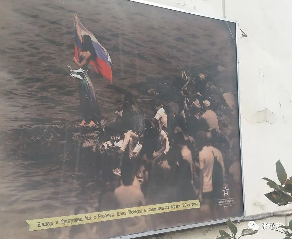 大公时代的俄罗斯,东西只达到伏尔加流域,南北更不过是窄窄一条。与后日不仅穷极了地尽头、而且抵达了海尽头的膨大帝国相比,它的古代地盘,狭窄得不可思议。北起波罗的海的湾岸三国、南至直到黑海的波兰与乌克兰,它们与俄罗斯吞并分割恩仇情怨,纠缠了数百年。如今它们一字甩手,如盾牌阵,结成了一道敌视的壁垒。上一次怒斥俄罗斯的是波兰,伴随着电影《卡廷森林》的热演。此一轮怀着血海深仇的是乌克兰,大打出手的战场正是“诺沃罗斯”(新俄罗斯)——昔日克里米亚汗国的牧场。站在塞瓦斯托波尔,绵延的大陆通向圣彼得堡。纳西莫夫海军上将广场上竖立着巨大的宣传画,一个在黑海之滨披着俄罗斯三色旗的美女伴着一句口号:“回到未来,我们和俄罗斯在一起!”(Назад в будущее, Мы с Россией)![]()