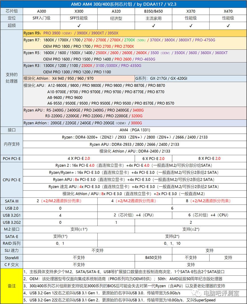 ▲ 主流AMD平台锐龙(架构)系列处理器