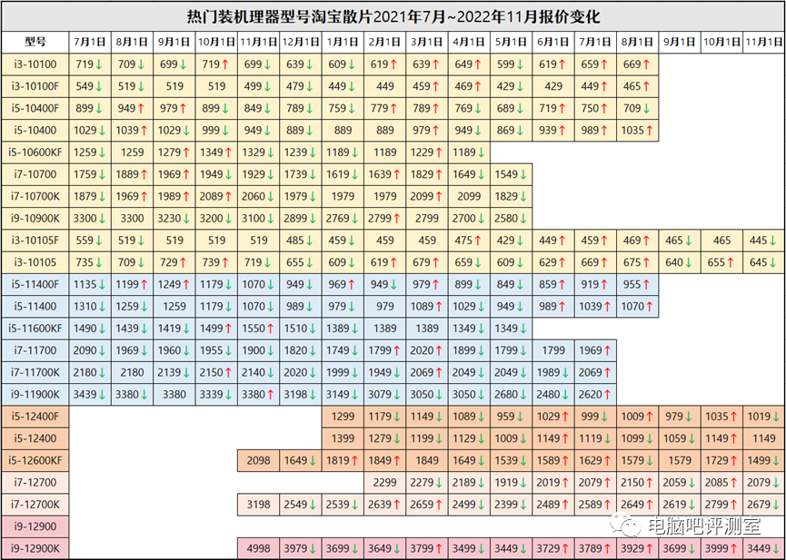 【1.6】CPU价格变动表