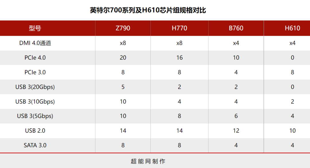 相比于现有的B660主板,新款B760主板的上市定价可能会偏高,预计成本相比前者会高出100元以上,如果是高规格的产品,至少要再贵出200到300元。两者规格相差也不大,B760芯片组的PCIe 4.0通道数量从B660芯片组的6个,增加到10个,同时PCIe 3.0通道数量减半,从8个减少为4个。