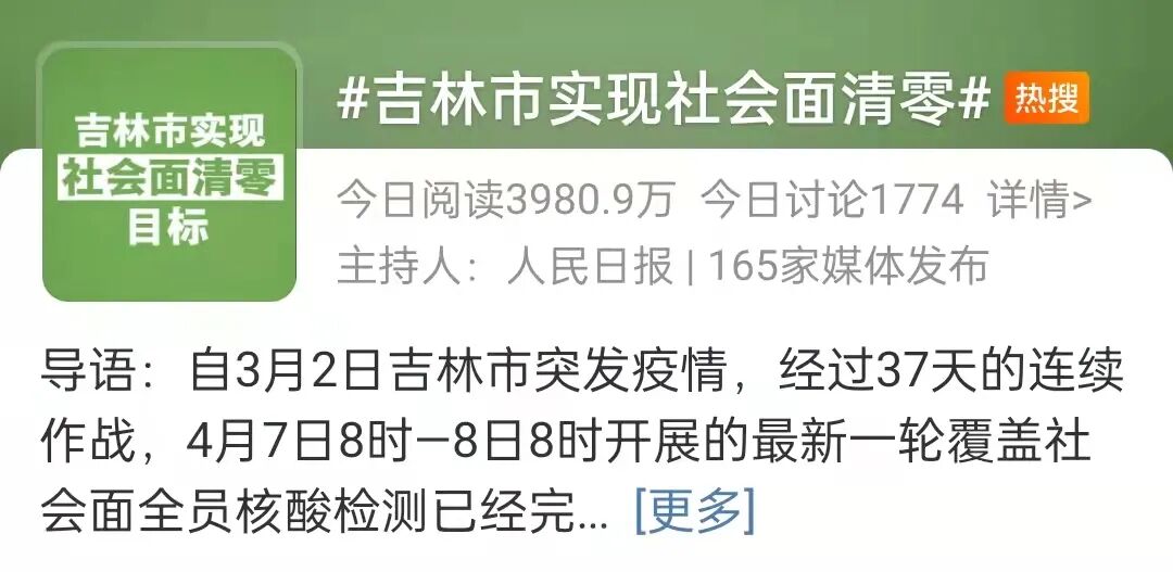 这次是个好消息,就是当地已经实现“社会面清零”了。