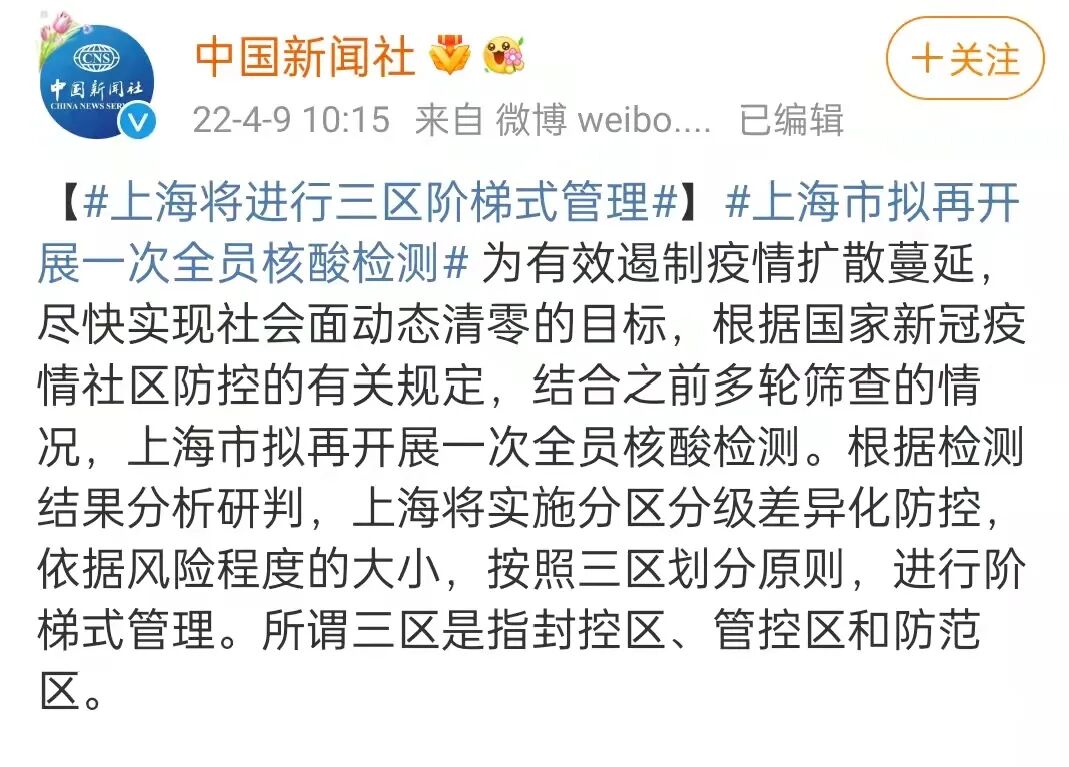 昨天,上海公布消息说,将再开展一次全员核酸检测。