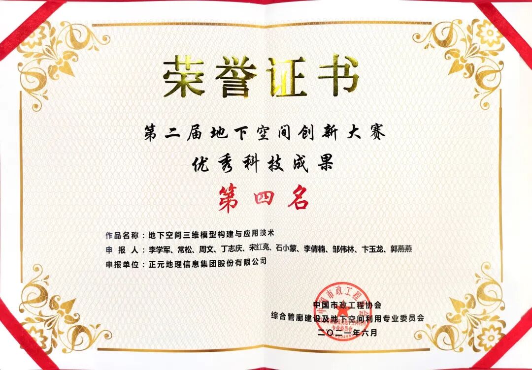 6月,集团公司研发中心自主研发成果“地下空间三维模型构建与应用技术”,在“全国第二届地下空间创新大赛”中,荣获优秀科技成果第四名。
