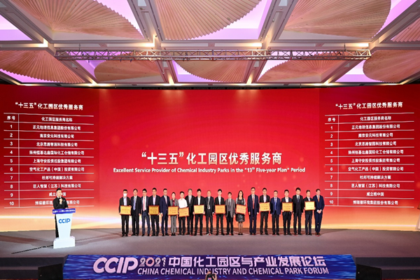 6月2至4日,由中国石化联合会、中国化工经济技术发展中心、山东省化专办、烟台市政府联合主办,烟台开发区管委承办的“2021中国化工园区与产业发展论坛”在山东烟台举行,集团公司总经理、党委副书记杨占东应邀出席论坛,并作为颁奖嘉宾为获奖单位及个人颁奖。会上,公司荣获“十三五化工园区优秀服务商”荣誉称号。