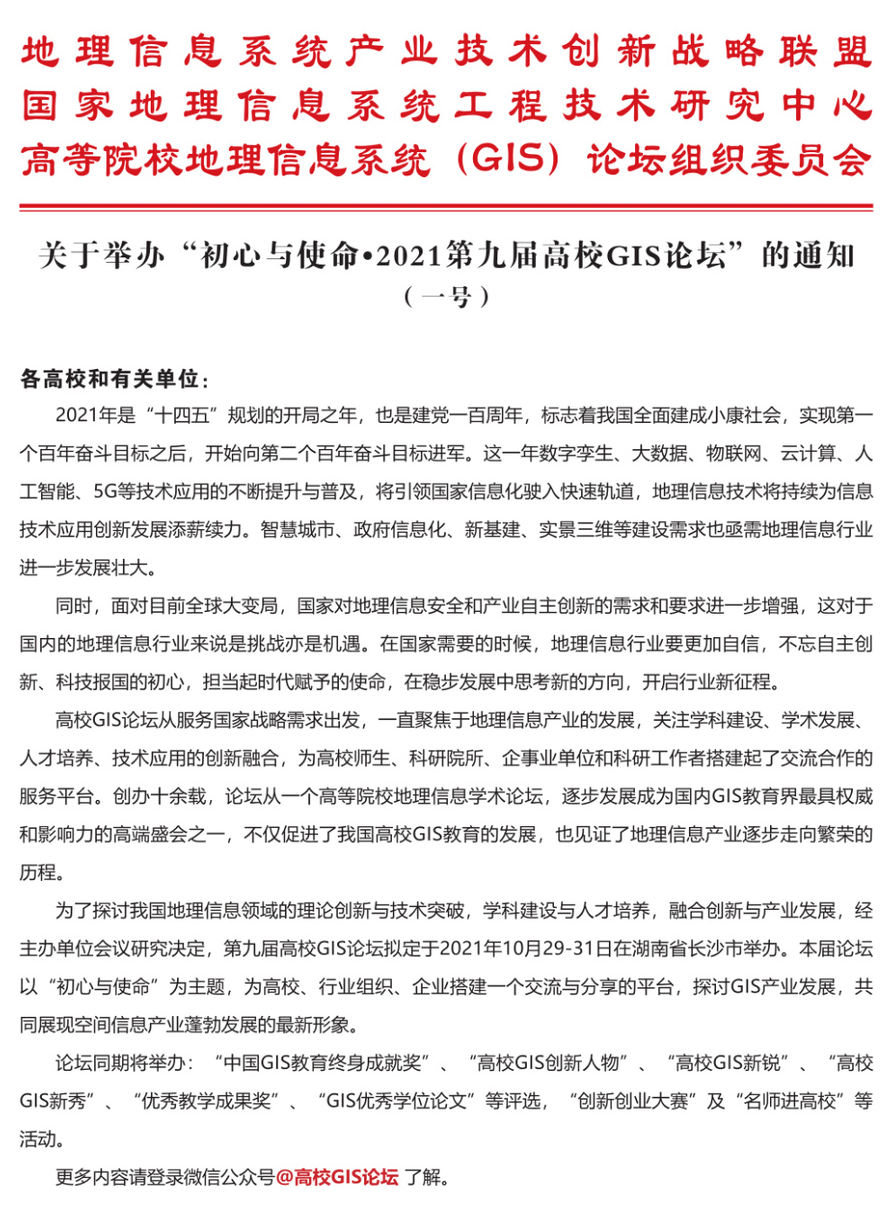 协会通知 | 2021中国地理信息产业大会通知(第一号)