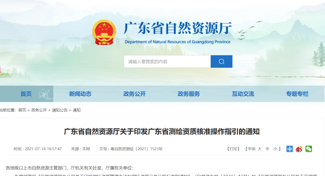 广东省自然资源厅关于印发广东省测绘资质核准操作指引的通知