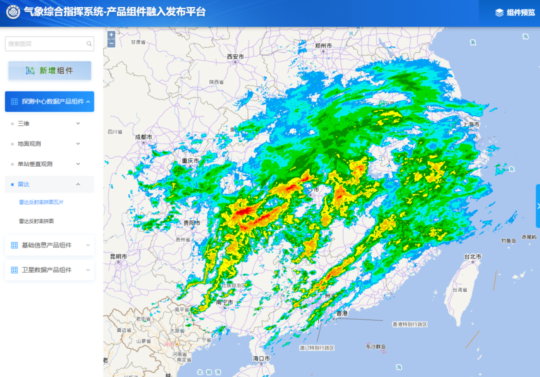 ▲气象综合指挥平台-实况预报一体化显示界面