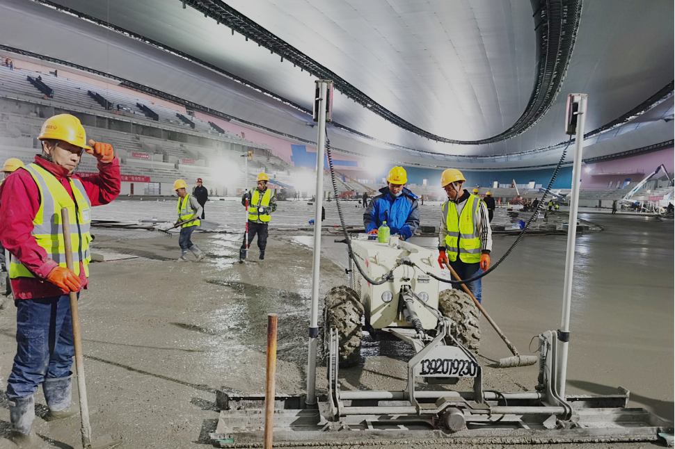 国家速滑馆内水泥基底铺设