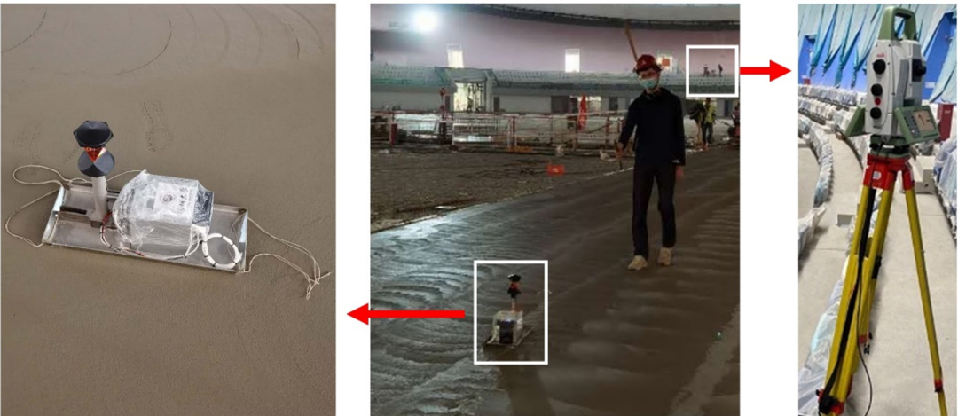 北京冬季奥运会标志性建筑国家速滑馆“冰丝带”采用全冰面设计,冰面面积约1.2万平方米。为了打造“最快的冰”,保障制冰后冰面温度均匀,使运动员赛出水平,国家速滑馆对冰面混凝土基底平整度建设提出了高标准的要求,即任意5m区域内高差不超过±3mm。为达到这一目标,亟需高效、高精度的平整度测量装置,及时发现平整度超标位置,反馈给施工方在混凝土凝固之前进行修正,并对竣工之后的水泥基底进行验收评价。