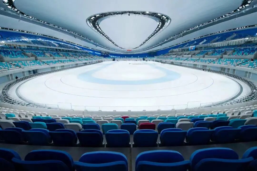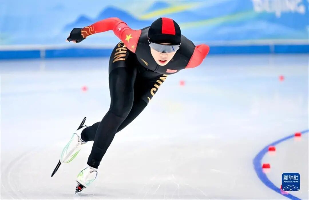 ▲中国选手在“冰丝带”比赛(新华社图)▲