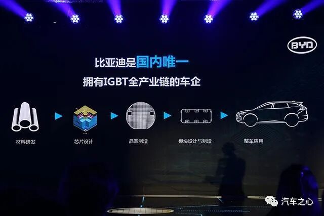 基于这块芯片,比亚迪打造出了车规级 IGBT 模块,并应用在比亚迪纯电动车 e6 上。