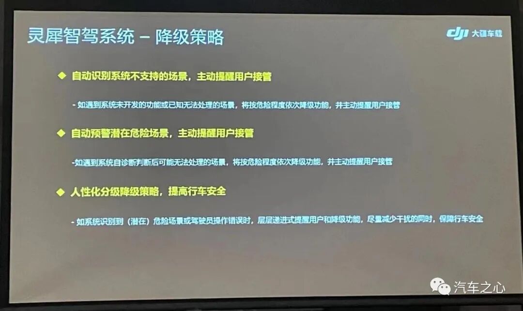 相反,大疆强调打磨自己的基本功,在不追求硬件堆料的情况下,用合理适用的硬件配置,打造好用的基础 ADAS 功能;在不依赖外部数据源的情况下,只靠在线感知实现核心能力;依托高度整合一体化的系统构架,行泊一体,让智驾系统的功能和场景连续起来,并持续地学习升级。