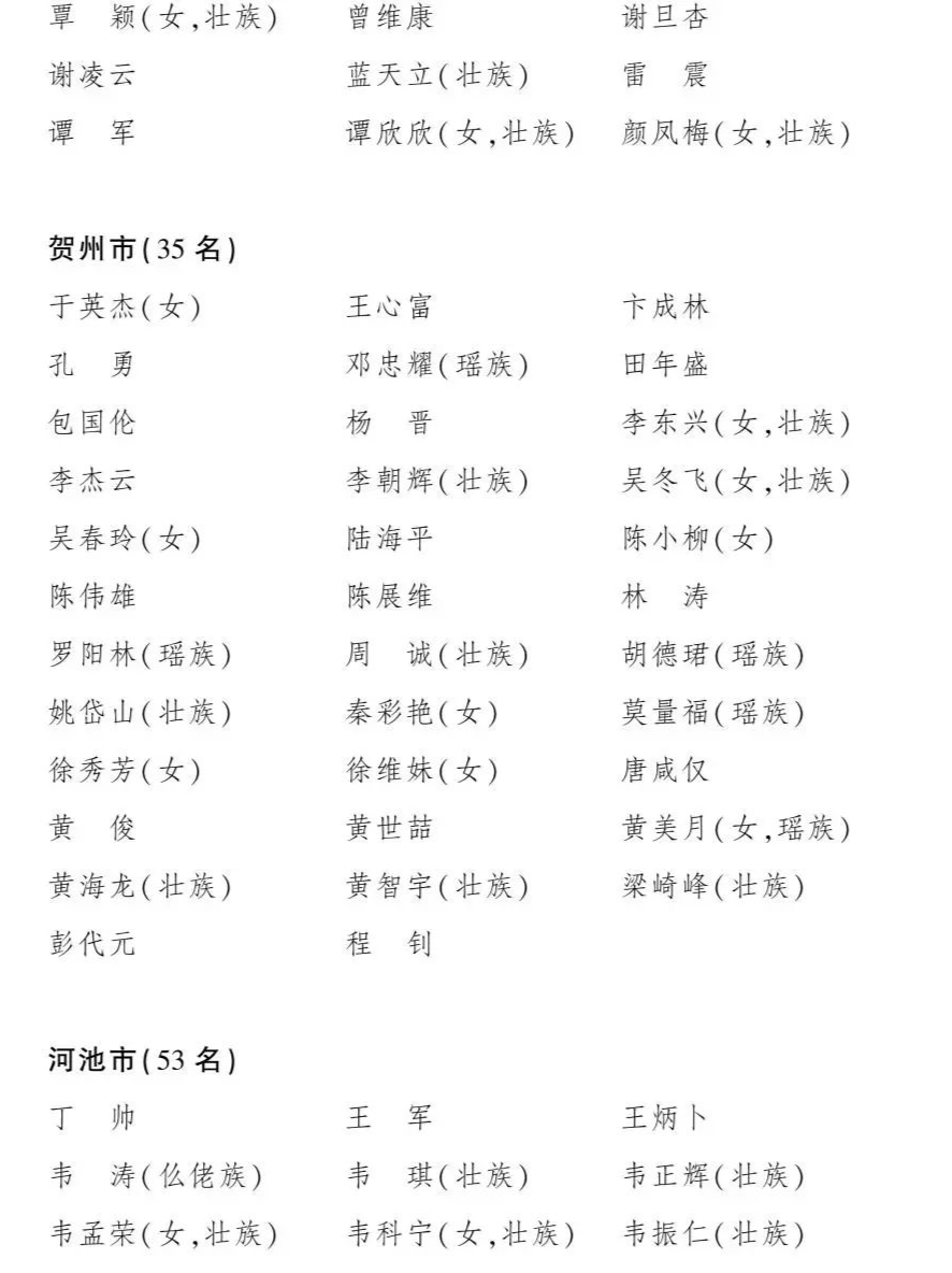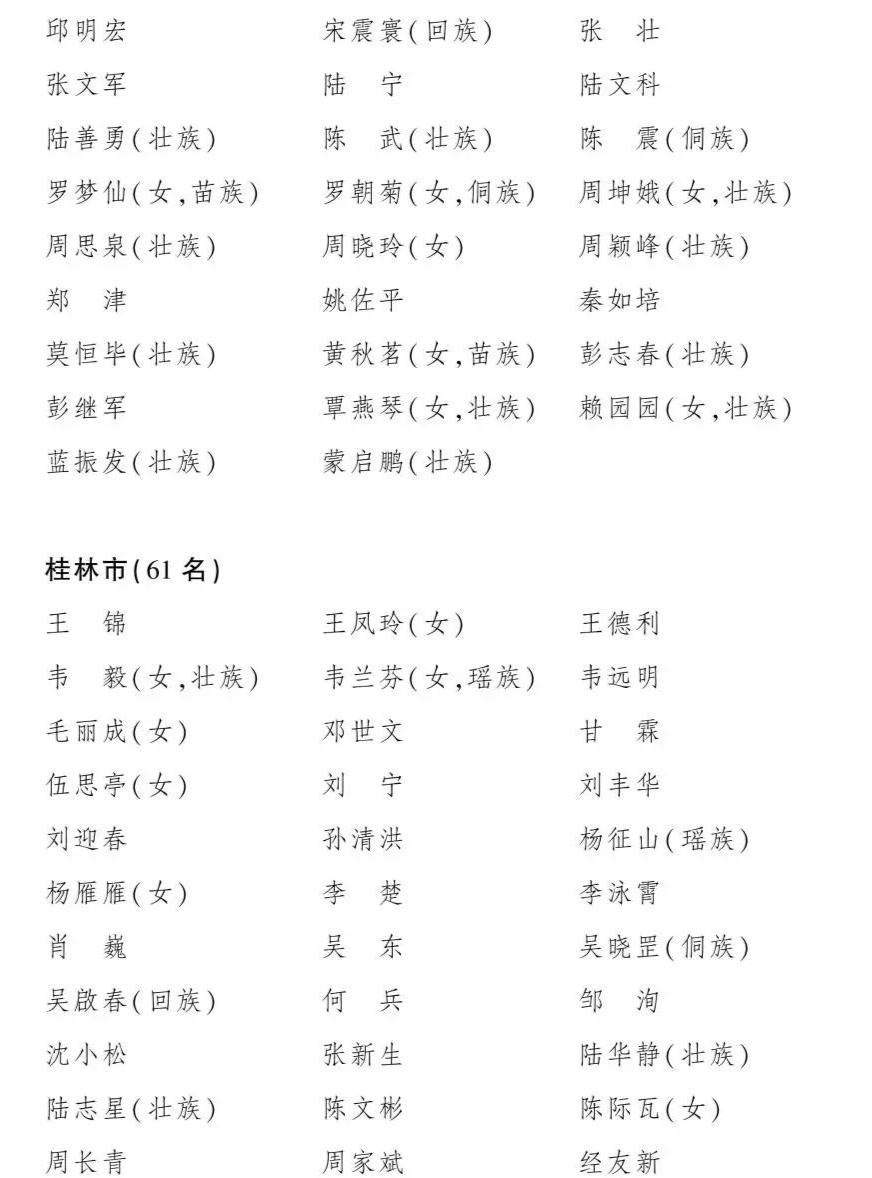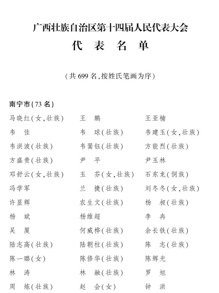 1月10日,广西壮族自治区人民代表大会常务委员会发布公告,对广西壮族自治区第十四届人民代表大会代表名单进行公布。