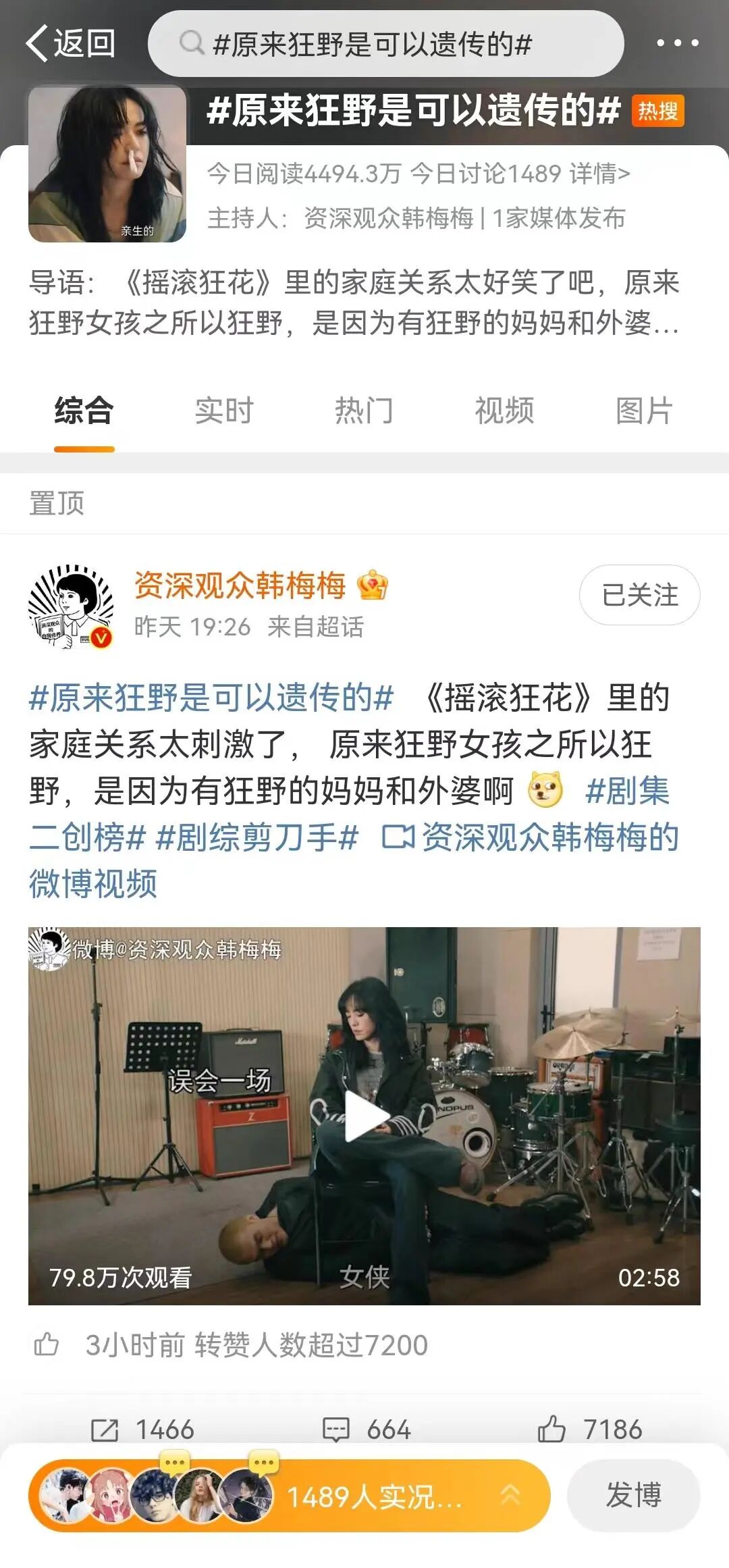 她不仅继承了母亲对摇滚的爱,也继承了母亲的暴脾气。