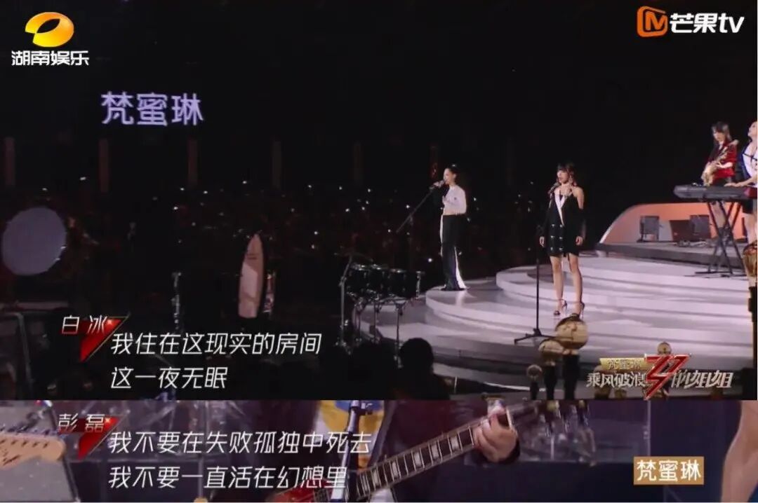 2018年中国好声音总决赛,选手演绎周董经典的《以父之名》。在现场听的周杰伦也许听不出什么毛病,但电视机前的观众看到字幕肯定都摸不着头脑了:上一季《浪姐》中,宁静组表演《傲娇》,把“前凸后翘”唱成“天生迷人”,“放荡”唱成“放肆”,“十八段变速玩具”唱成“十八款格斗游戏”。原歌词唱,“我用手指击碎了砖头,我的名字刻在少林寺”。像旅行团乐队的这首《Bye Bye》,每一句都踩在雷点上。明明这也不敢唱,那也不敢唱,能不能别硬选那种有性格的歌曲。重灾区《易燃易爆炸》,华晨宇在《歌手2018》演唱时被割过一茬。“轻佻”变“轻描”、“艳情”变“热情”、“销魂”变“失魂”、“赤裸”变“坦荡”……同样逃不过像小姑娘一样,被人打扮来打扮去的还有新裤子乐队。《你要跳舞吗》顺应湖南台的晚会,原词几乎没有一句用得上的。到了江苏卫视也一样,“颓废”已经唱出口了,字幕还是强行“腾飞”。上一季《浪姐》用了《没有理想的人不伤心》,更狂野。但问题是,当一首歌委曲求全至此,那么在当下的音乐里先行的到底是什么——