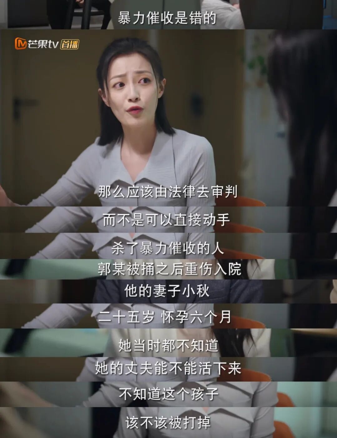 而刑一庭法官宋羽霏(王秀竹 饰)认为捅刺行为是在20分钟后发生的,辱母情节早已终止,捅刺时他和母亲都没有人身危险。