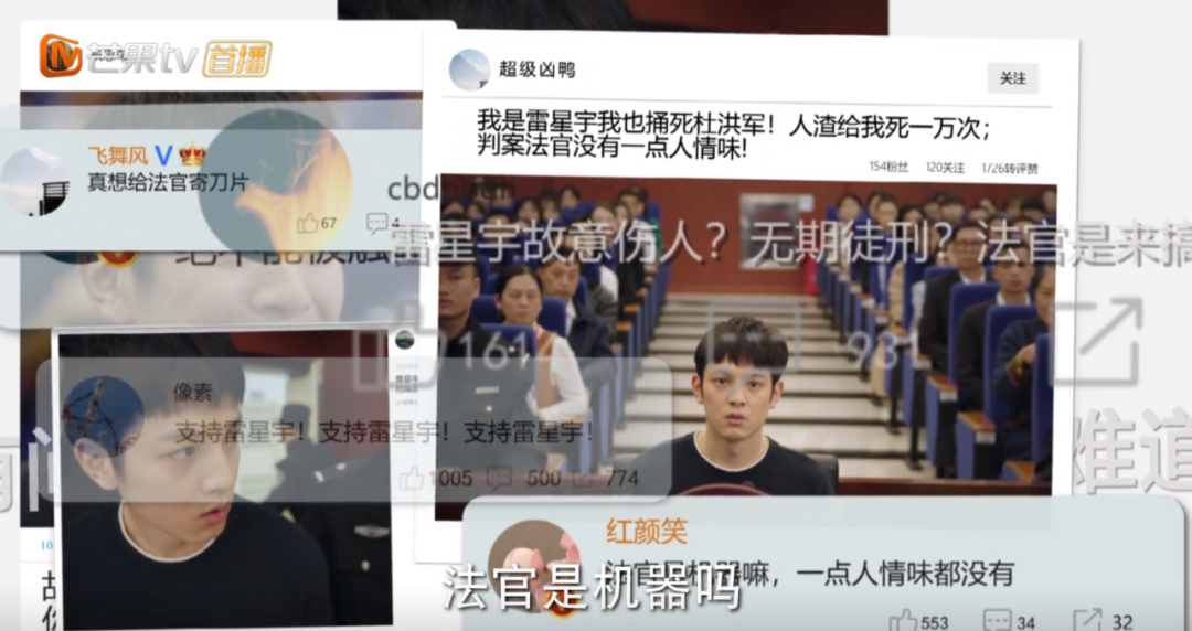 于欢在剧中的角色名叫雷星宇,他在法庭上的发言振聋发聩,引起无数网友共情。
