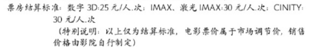 3D不低于25元/人、IMAX不低于30元/人、CINITY 30元/人。