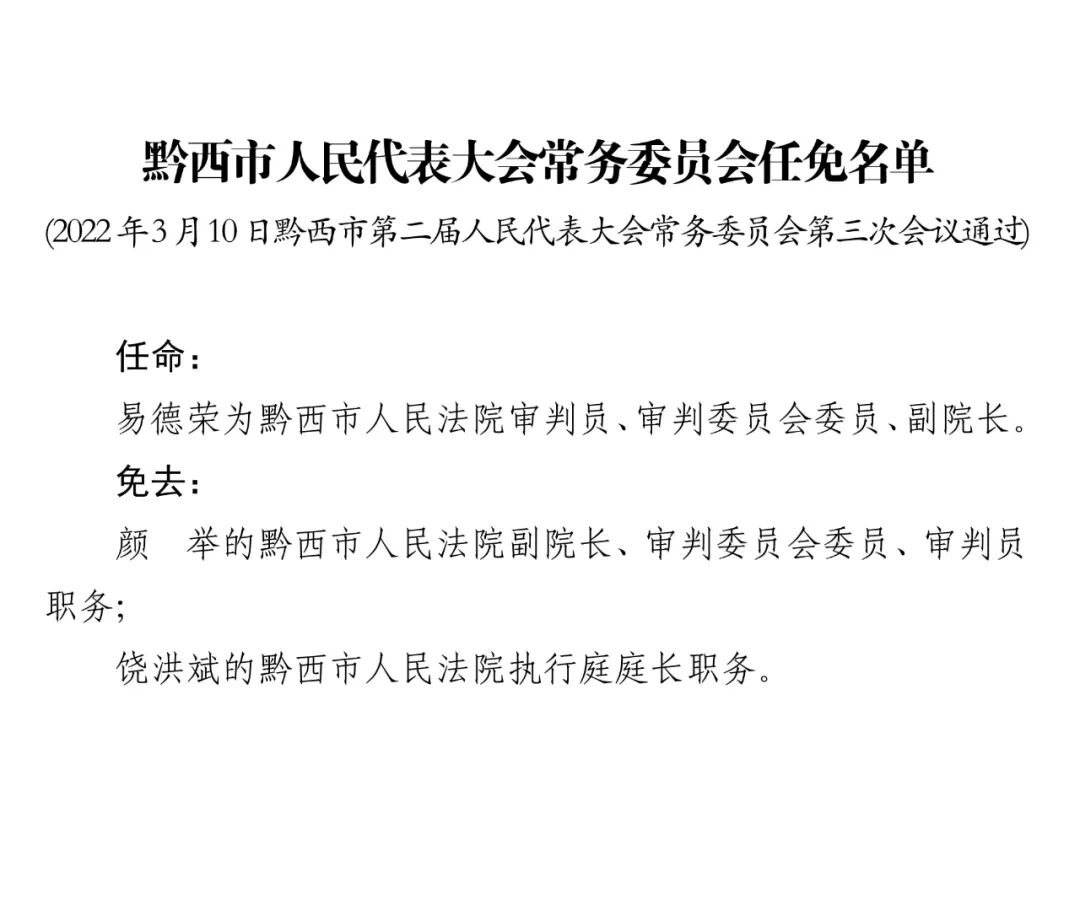 毕节一地最新人事任免
