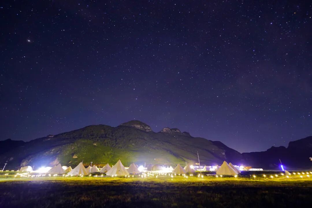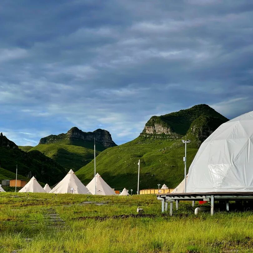 阿西里西·贵州之巅星空营地,坐落于平均海拔2200米的阿西里西大草原,地处贵州之巅,占地面积约60亩。属毕节旅游集团旗下“花都里”品牌高端营地产品之一。营地分为住宿区、娱乐区、休闲区、自助露营区、餐饮区、住宿区。帐篷45顶、星空泡泡屋7个休闲娱乐泡泡屋3个,分别为:书吧、影院、小酒馆。自助帐篷餐饮区提供下午茶、甜品、烧烤、水果、营地早餐,营地配有卫浴洗漱设施。