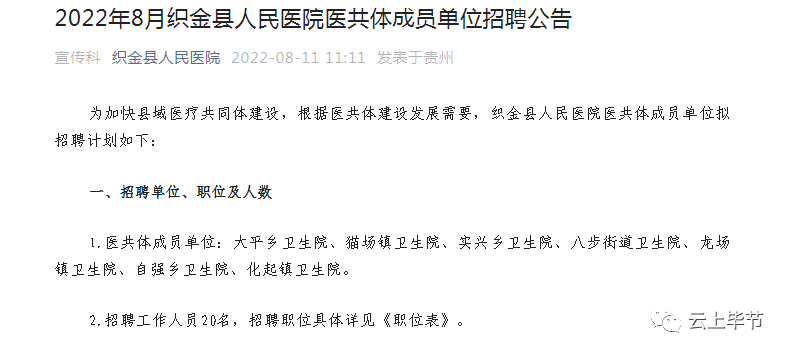 现场报名地点:织金县人民医院行政楼6楼政工科
