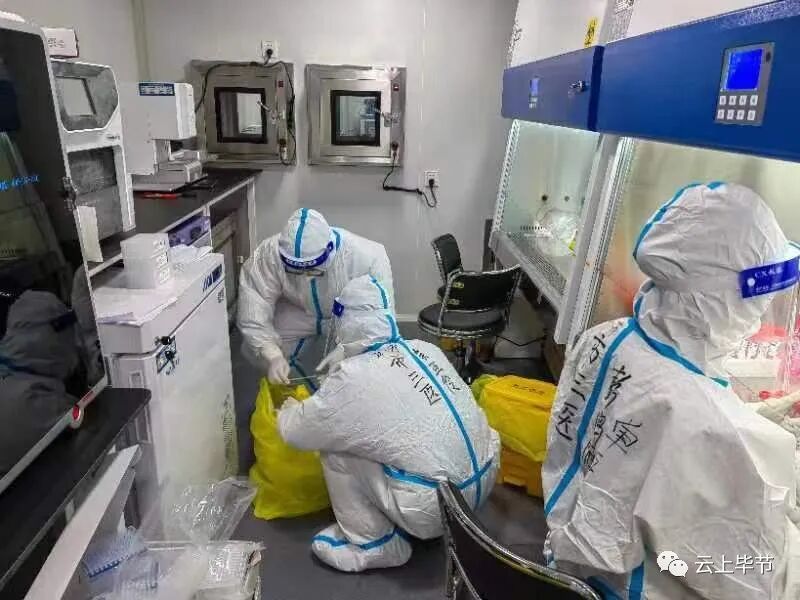 “我们每天进入‘方舱式’实验室八个小时,期间不能喝水、不能吃饭,中途不能上厕所。”织金县以那镇卫生院医务工作者周娇说。