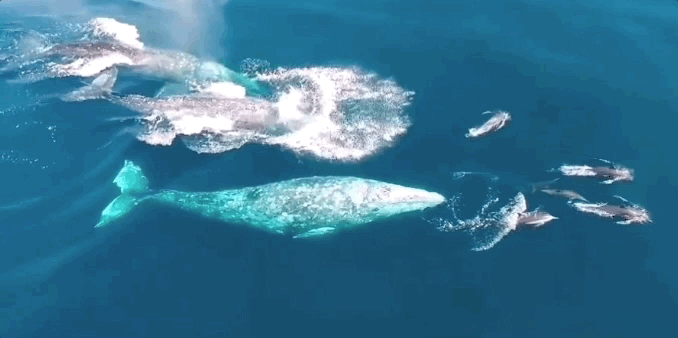 被人类解救后,虎鲸妈妈会带孩子喷着⽔花道谢离开;
