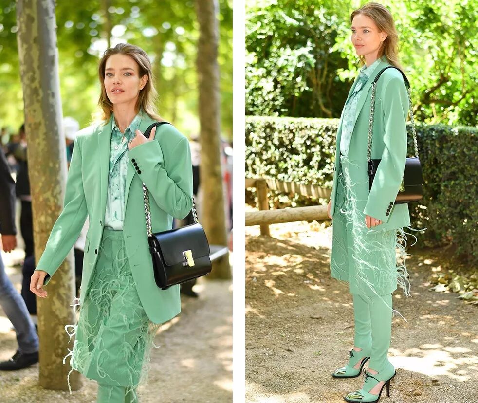 秀场外,LVMH的太子嫂Natalia Vodianova也身着原谅绿看show。我的妈呀!好温柔,好A,好时髦的感jio啊,受不鸟了,太美,偏心多放几张。