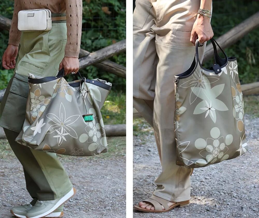 各种镂空的交织皮革设计和莫兰迪绿聚集,手袋借鉴了大手提袋的宽敞随意之感,以网面或镂空皮革打造,并加入一个可拆卸腰包。